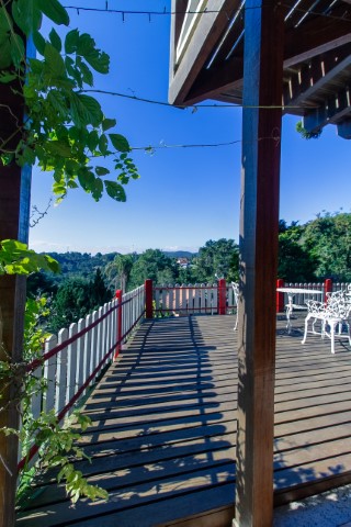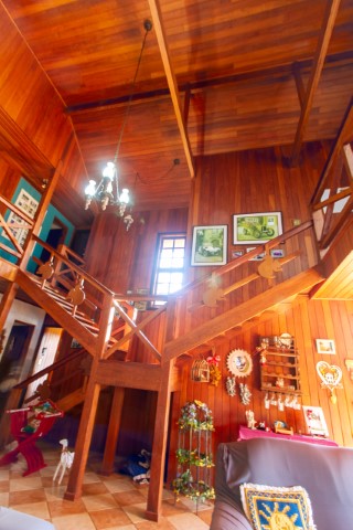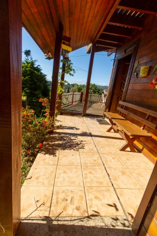 A Casa possuí na parte externa, uma confortável varanda com cadeiras para descanso.