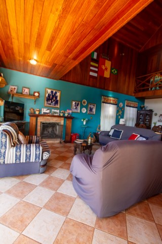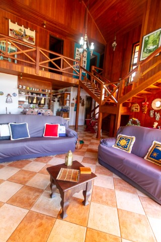 Casa grande e espaçosa, possui 2 Quartos com cama de casal, e 1 Quarto com duas camas de solteiro, 2 banheiros, sala com sofás e lareira para aquecer o ambiênte, além de TV, uma cozinha completa, com todos os utensílios necessários para preparar as refeições, além de uma varanda espaçosa com uma linda vista para as montanhas, a casa conta também com um espaço de lazer, com churrasqueira, pia externa.