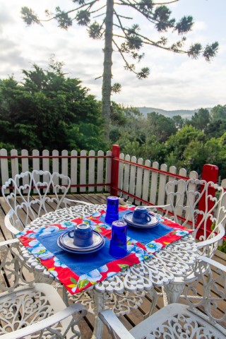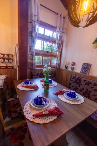 A Casa dispõe de uma mesas com cadeiras para utlização e refeições.