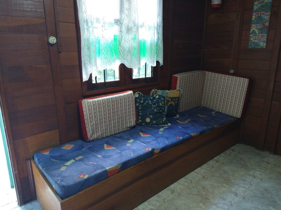 A Casa possuí na parte externa, uma confortável varanda com cadeiras para descanso.